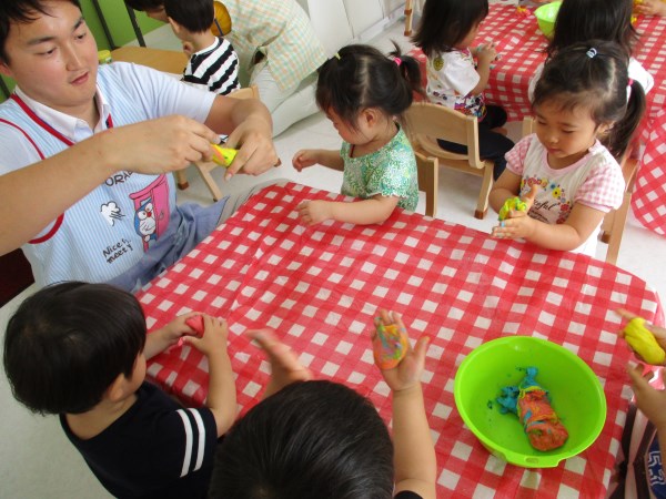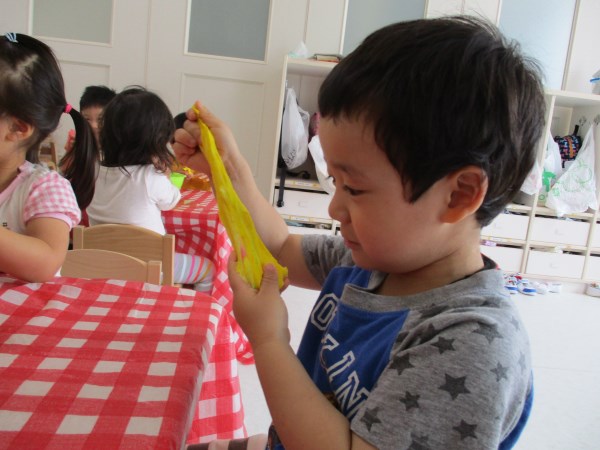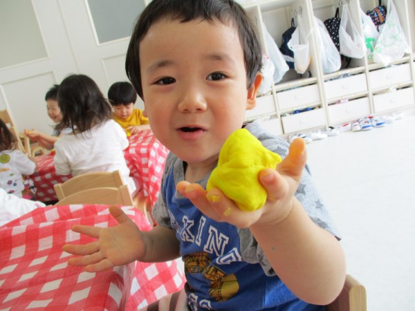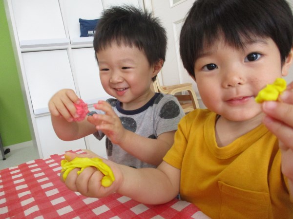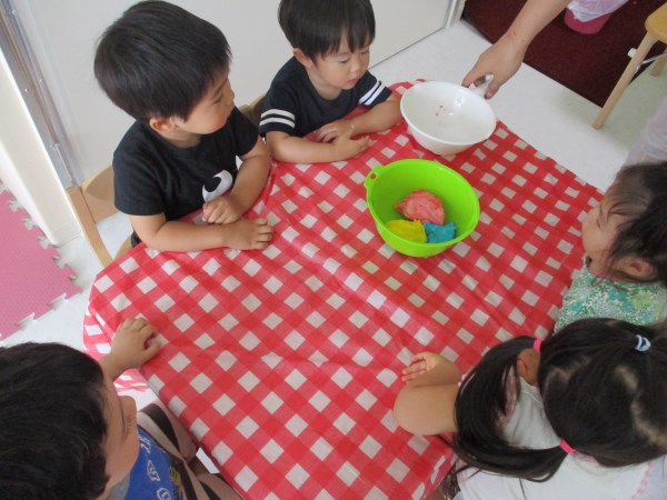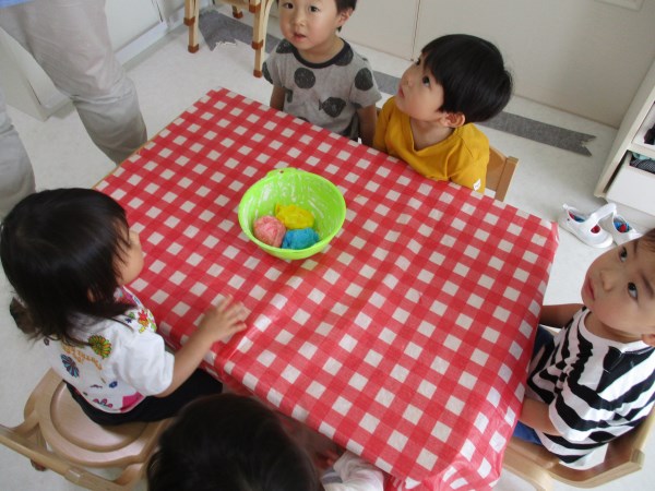 今回は、りす組の小麦粉粘土あそびの様子をご覧ください。