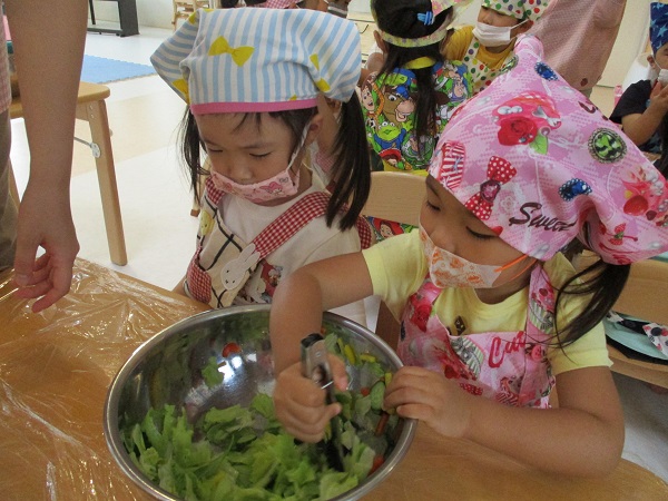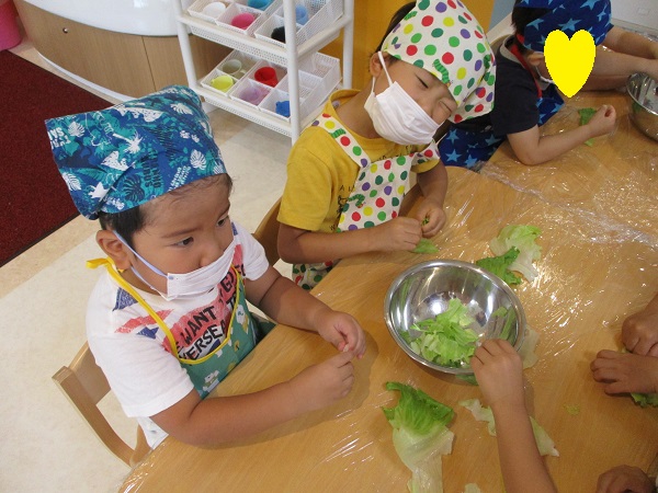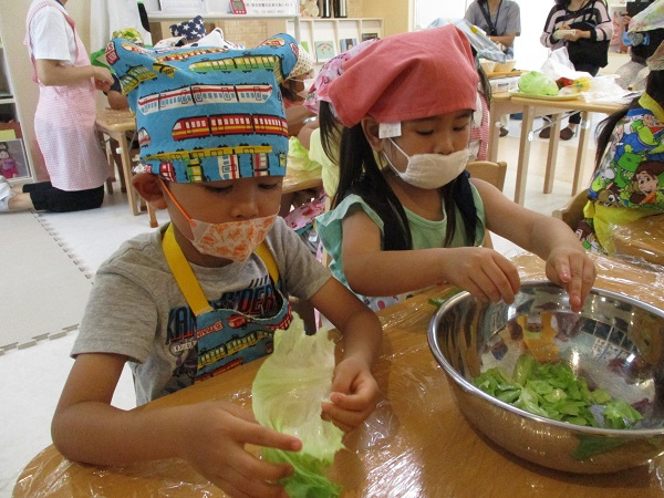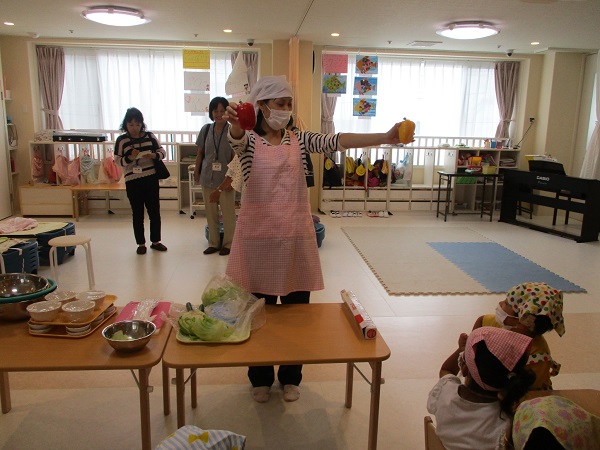 今回は8月28日に実施したうさぎ・ぱんだ・きりん組の食育活動の様子をお伝えします。