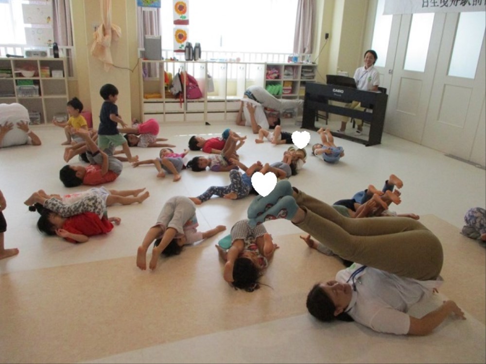 お歌の後は、みんなの大好きなリトミックを行いました。