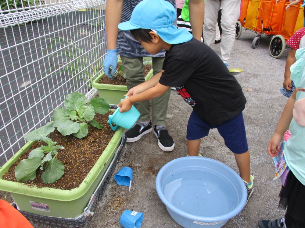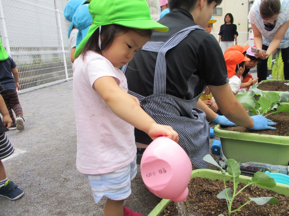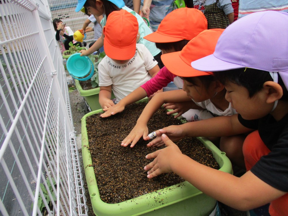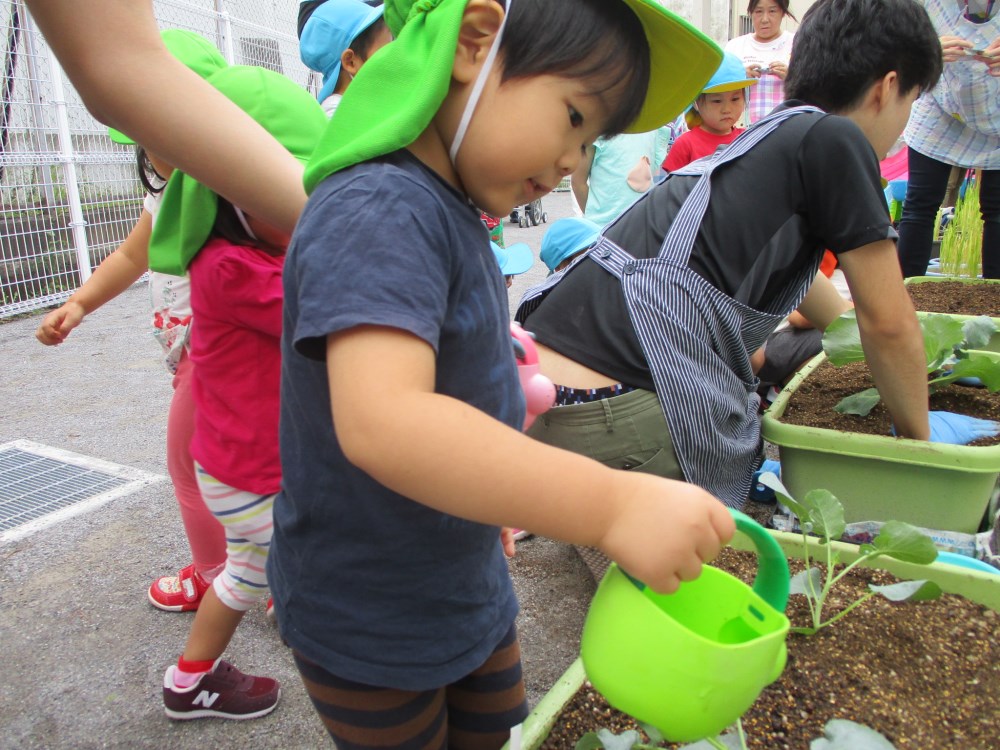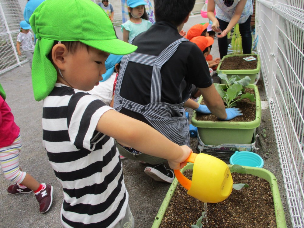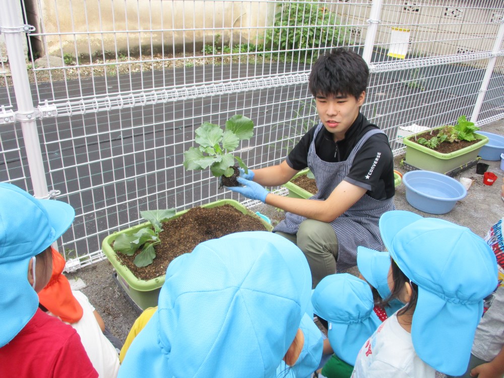 今回は「キャベツ・ブロッコリー・サニーレタス・サンチュ・大根・白菜」をみんなで植えました。