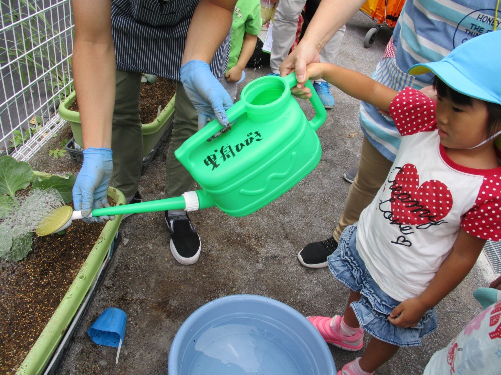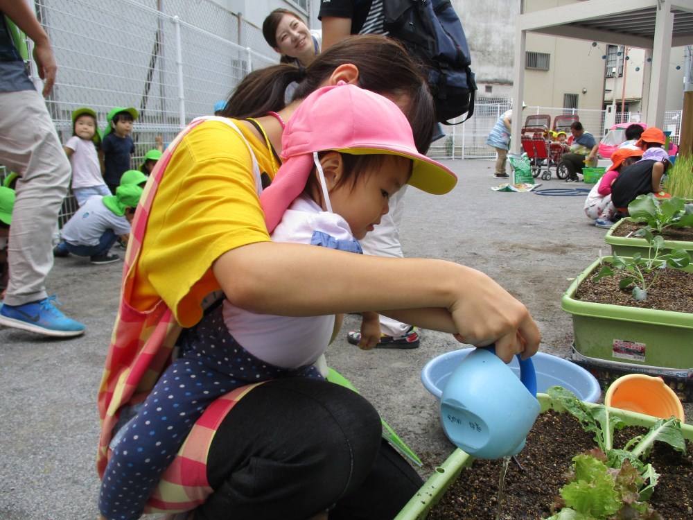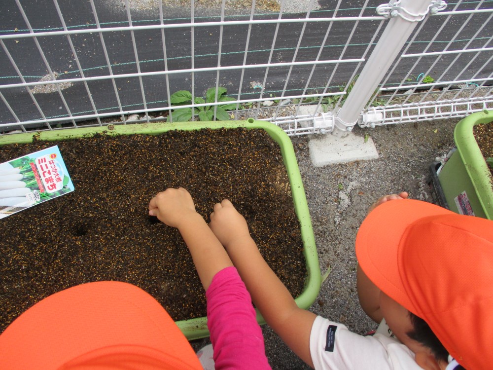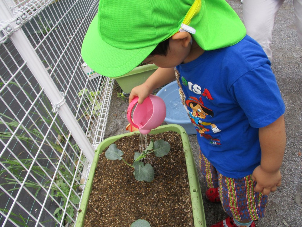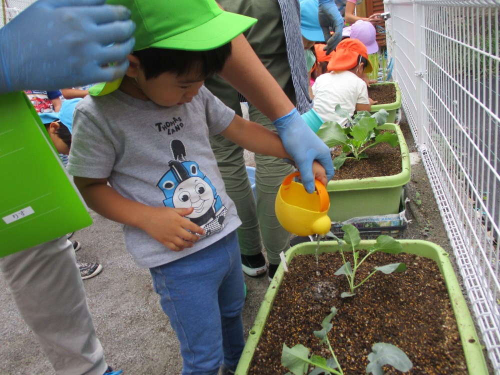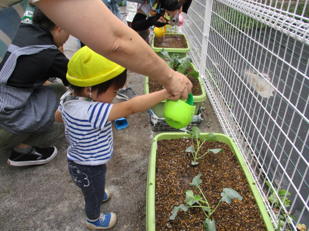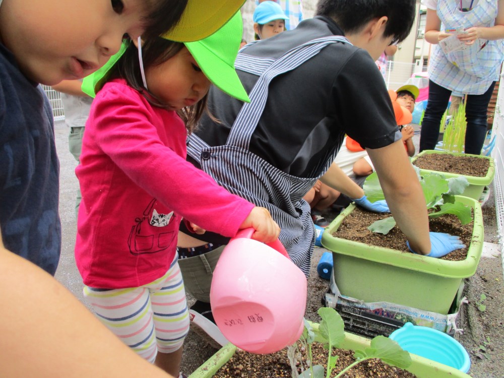 今回は「キャベツ・ブロッコリー・サニーレタス・サンチュ・大根・白菜」をみんなで植えました。