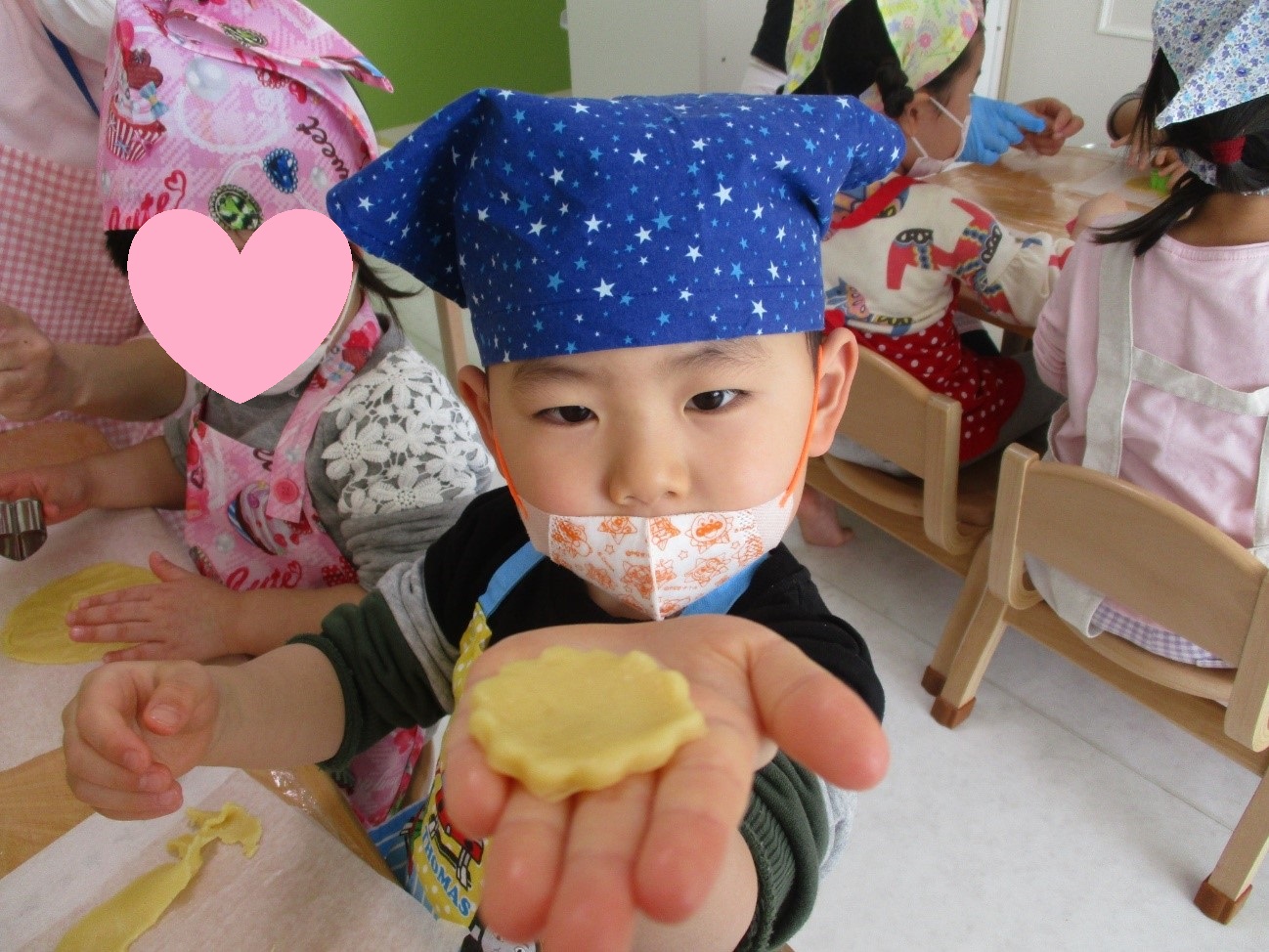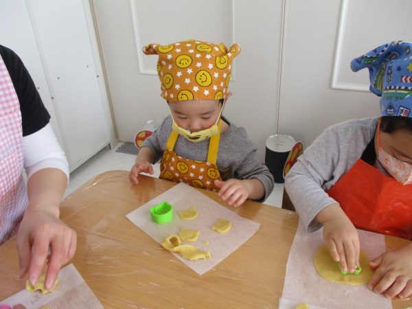 自分たちで伸ばして型抜きしたクッキーは、午後おやつになって登場!