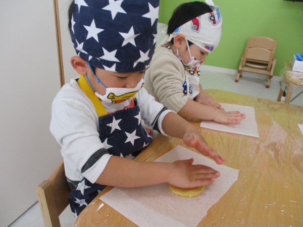 まずは、給食の先生が生地を目の前で作ってくれます!