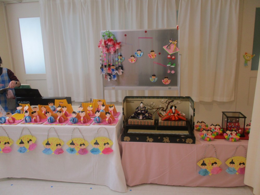 みんなで作ったお雛様も一緒に飾りとても華やかなに♡