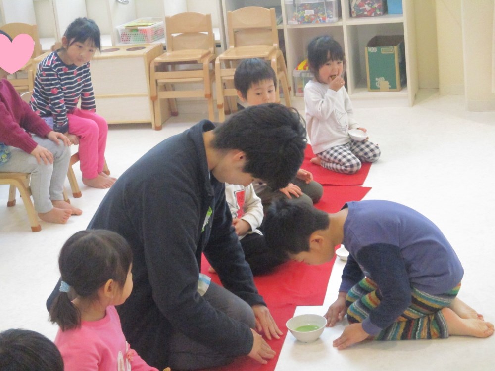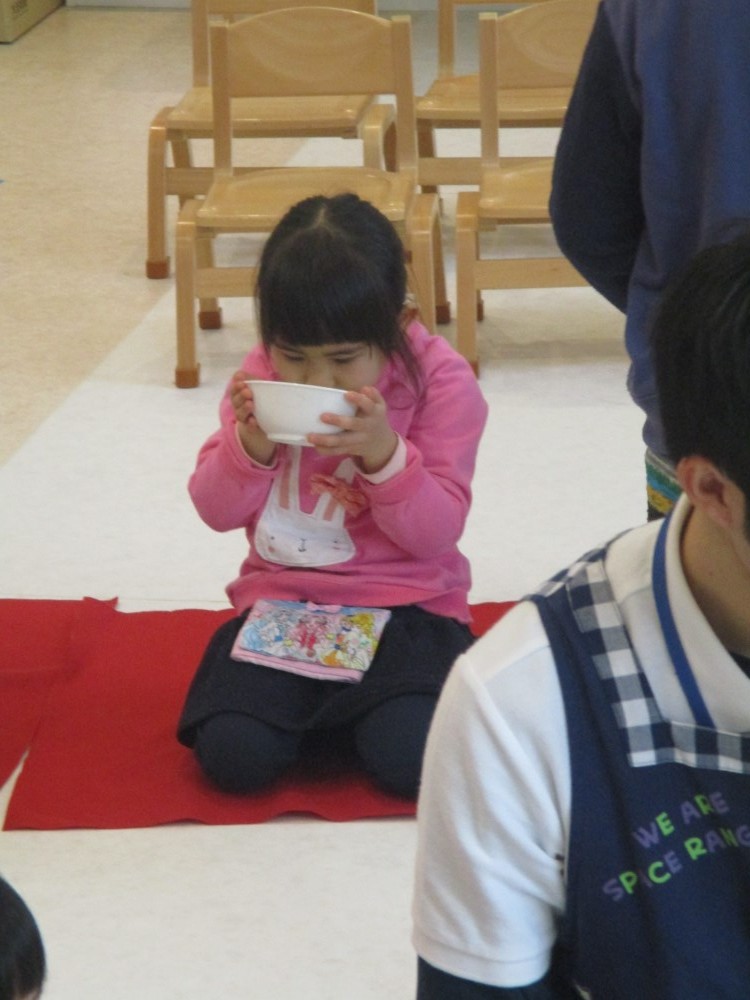 そのあと幼児さんは園長先生にお茶をたててもらいました
