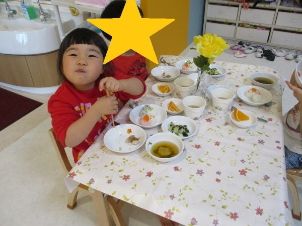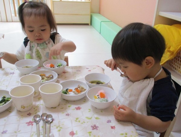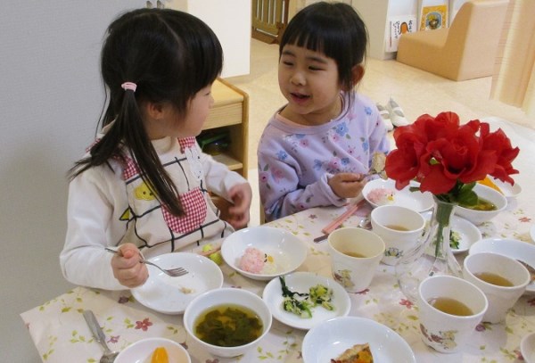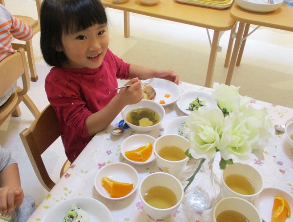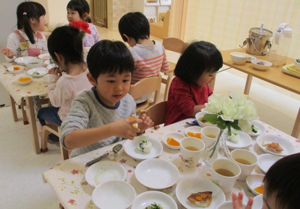 「かわいいね!」とお友達と話しながら楽しそうに食べていました。