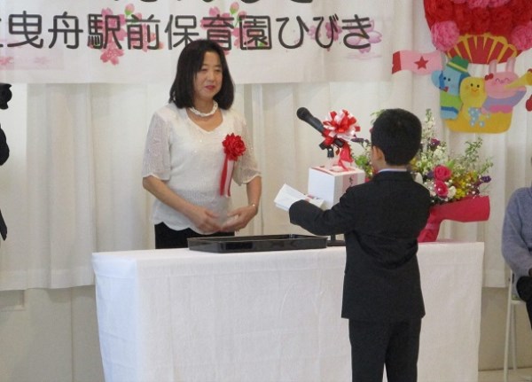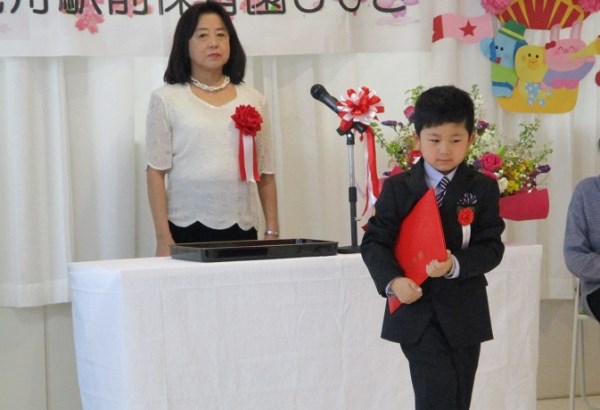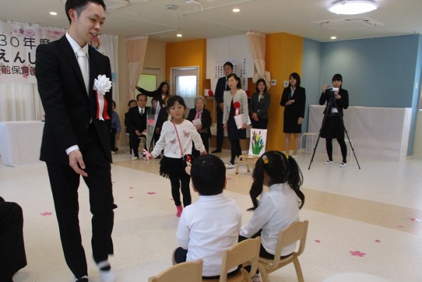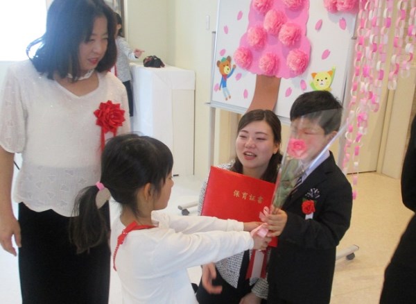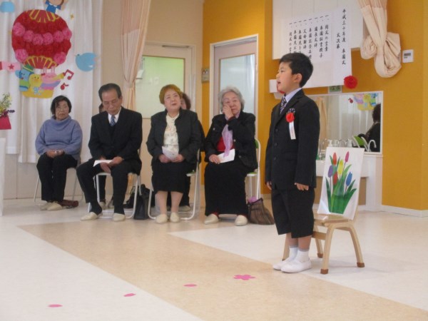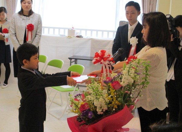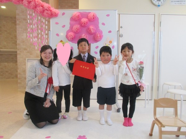 今日は、サプライズで途中退園したお友達が駆けつけ、式に参加してくれました。
