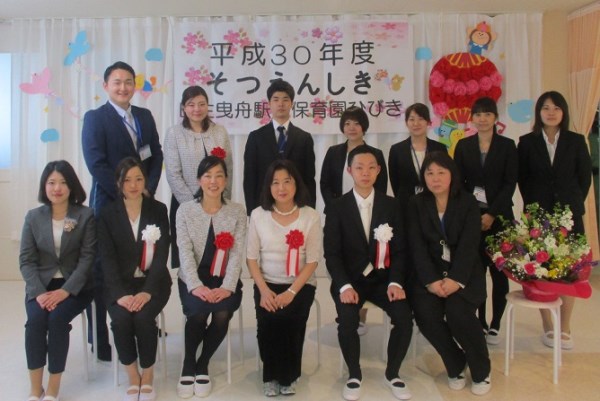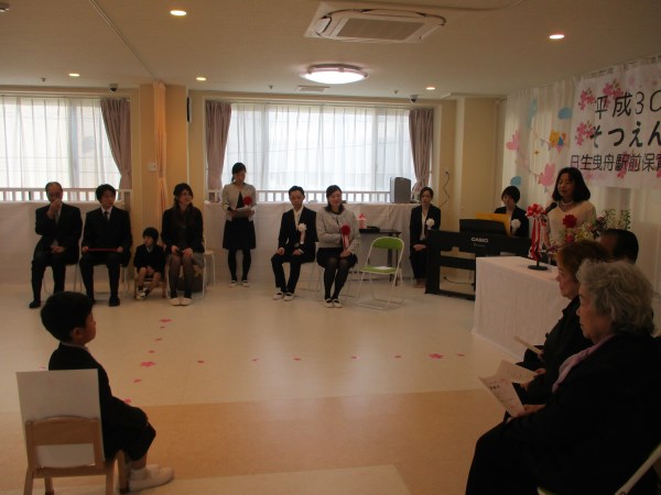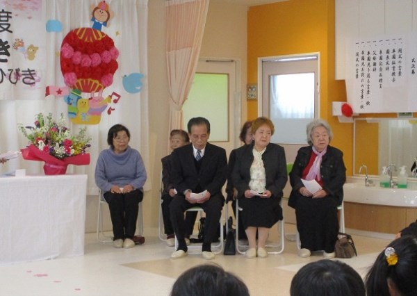 卒園児・在園児のぱんだ組、保護者の方々、職員の皆様
