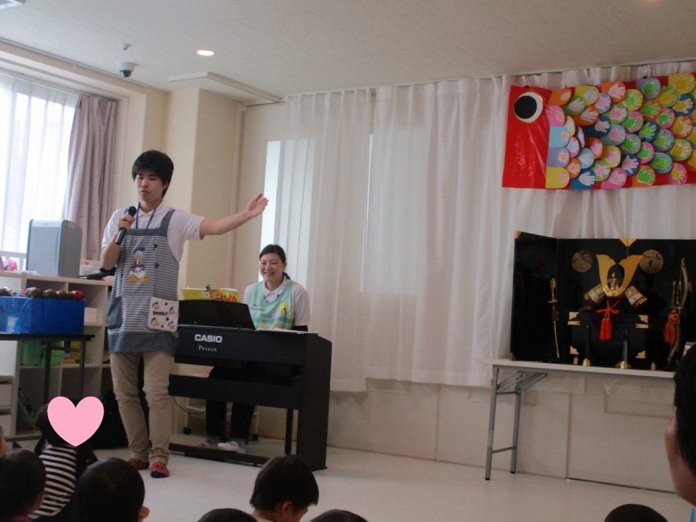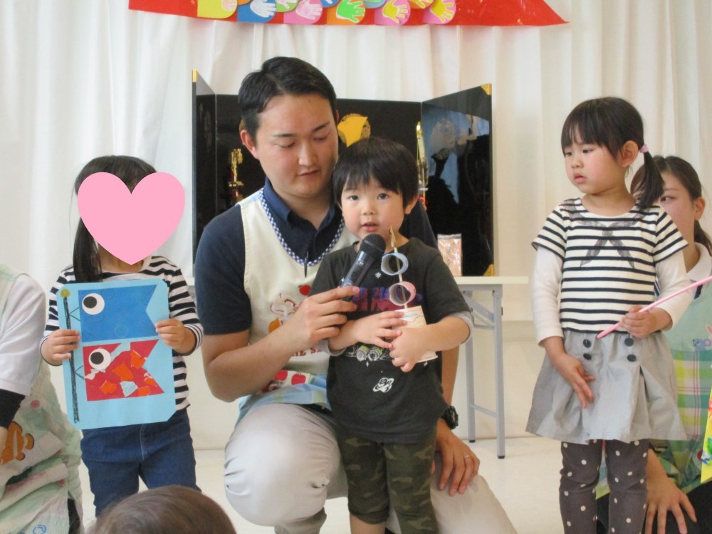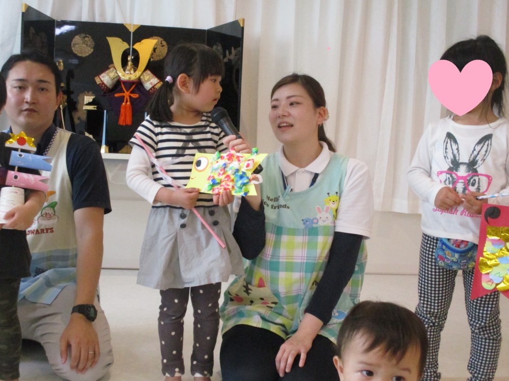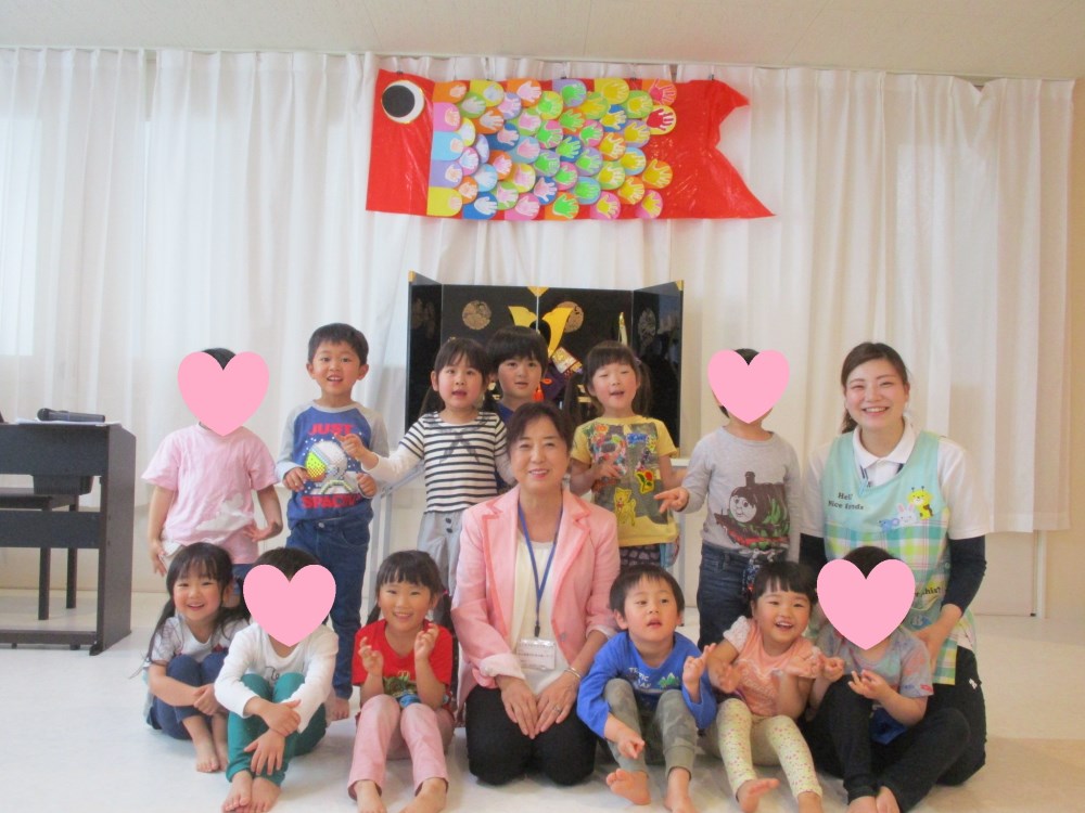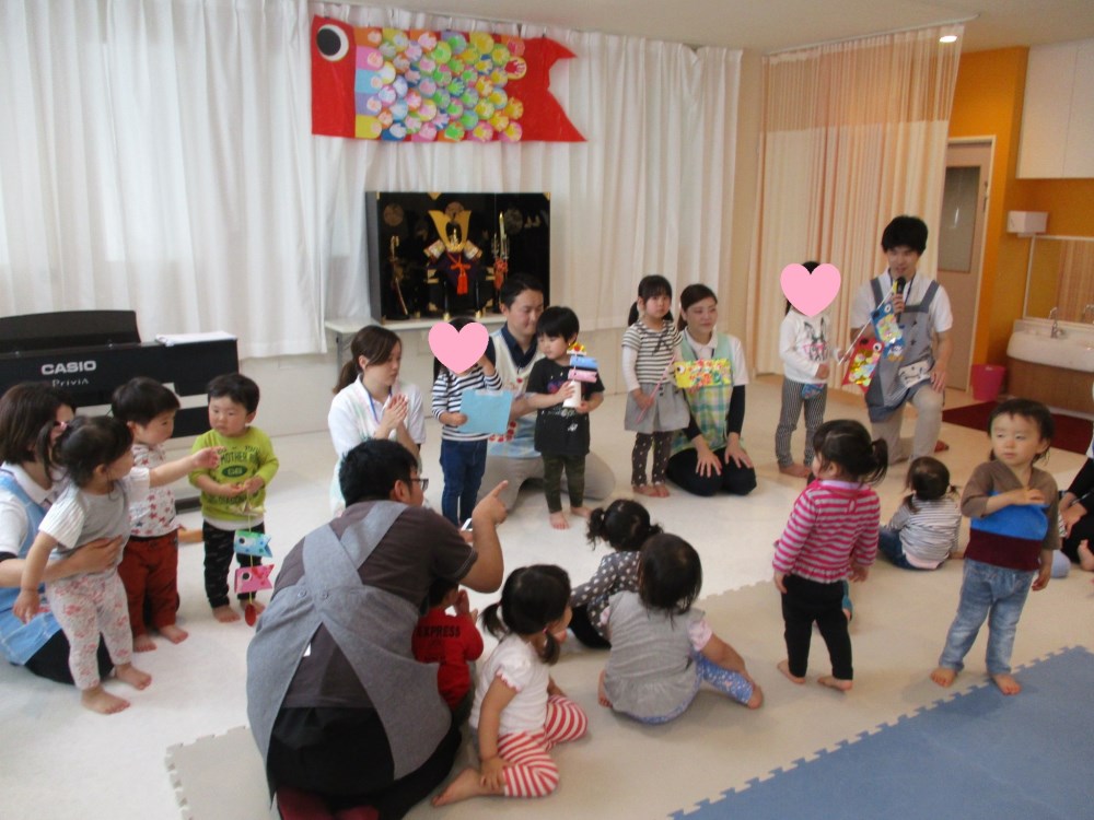きりんさんが前に出てきてくれみんなで「こいのぼり」を歌いました♪