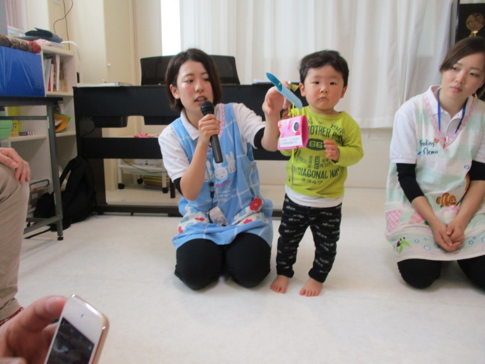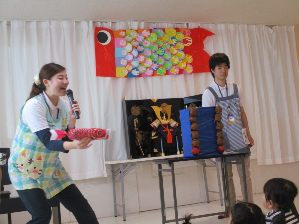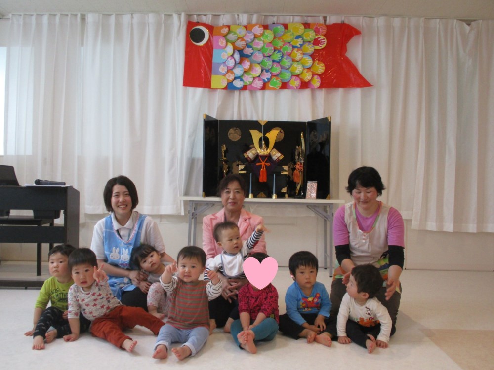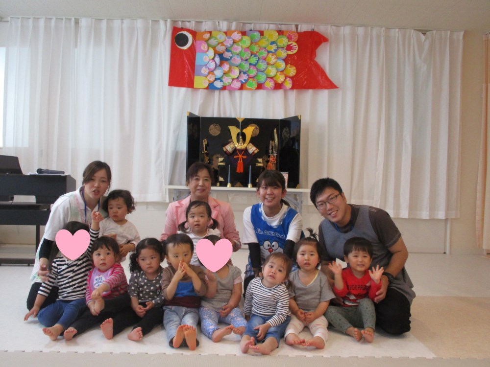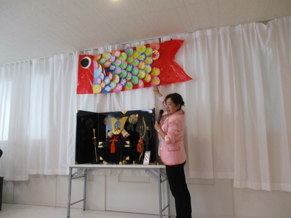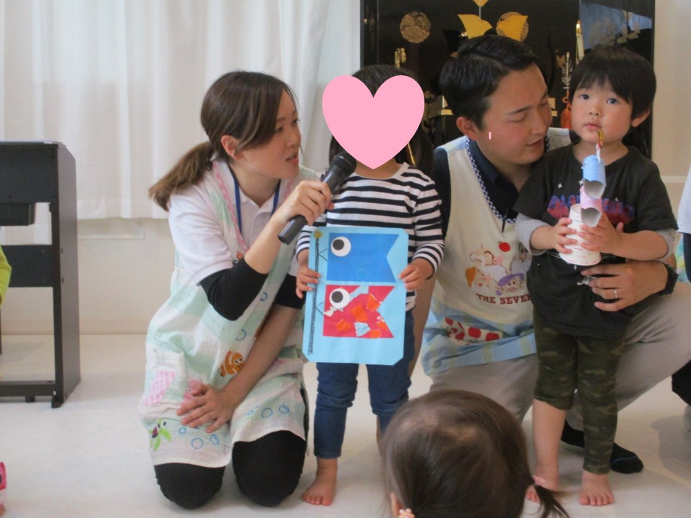 きりんさんが前に出てきてくれみんなで「こいのぼり」を歌いました♪