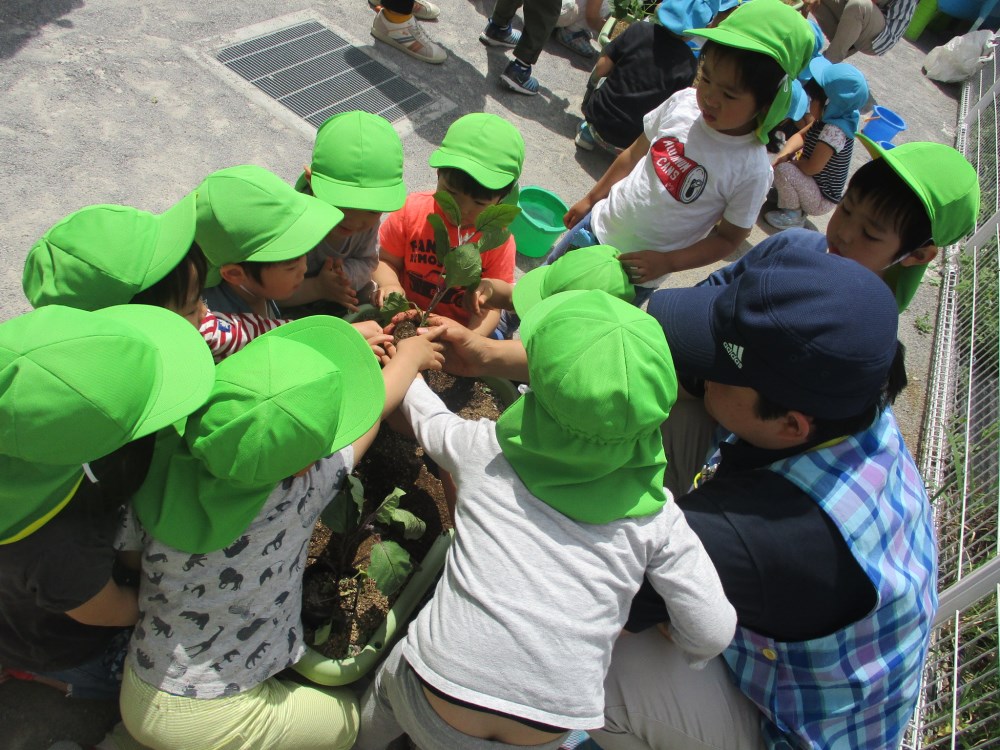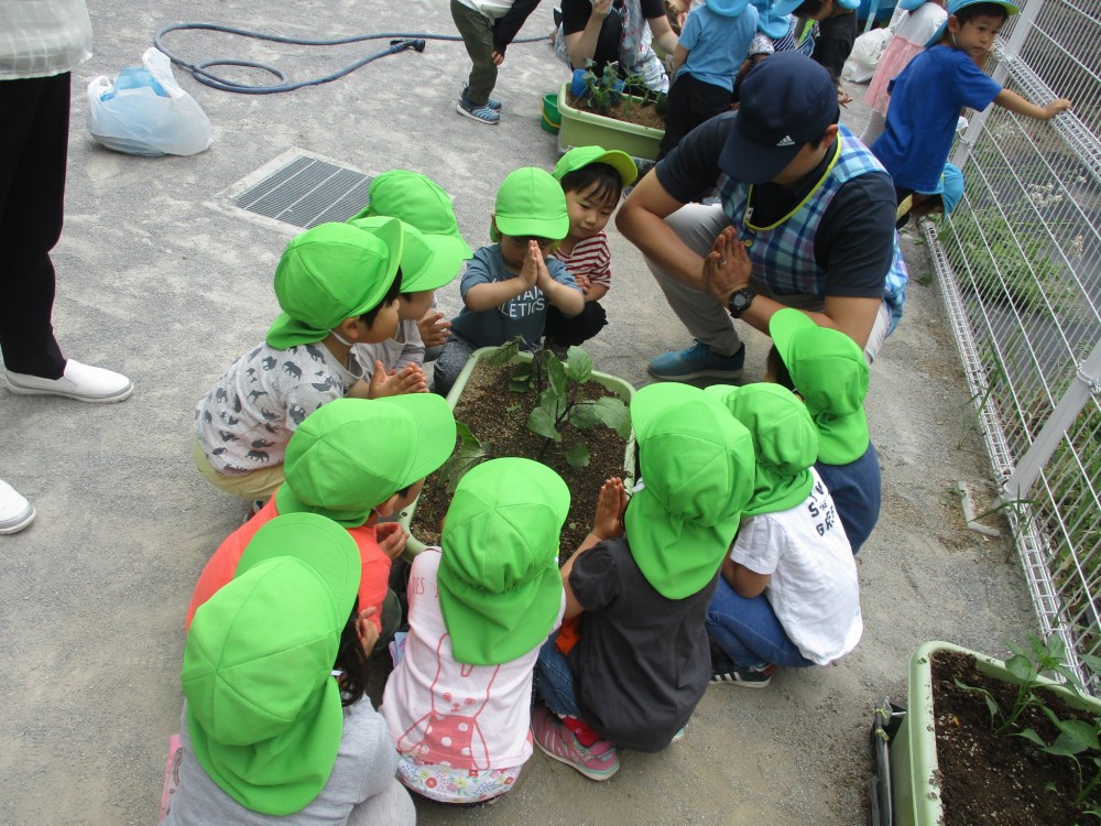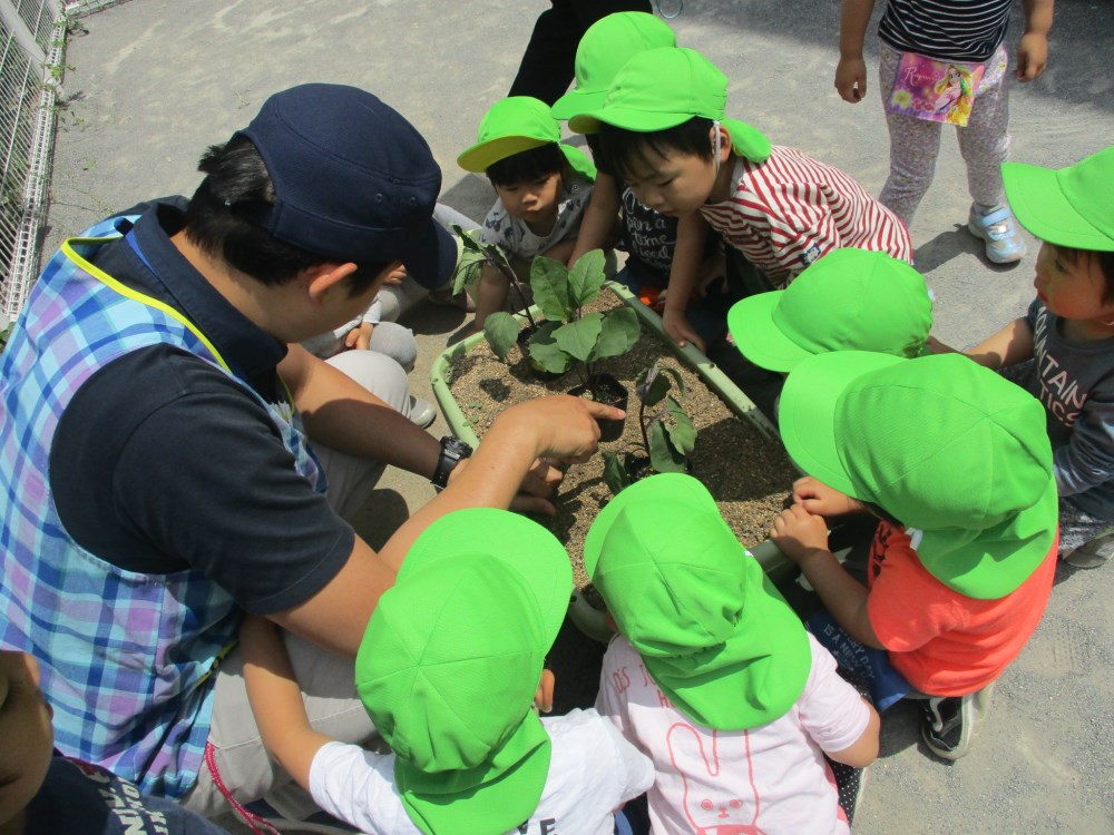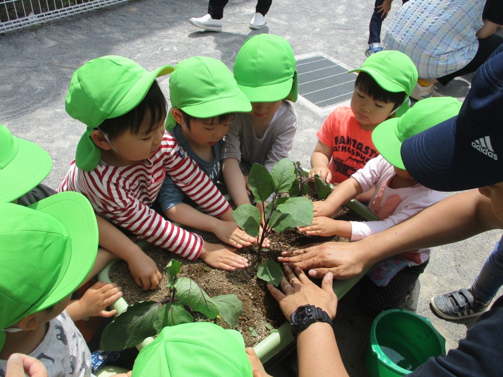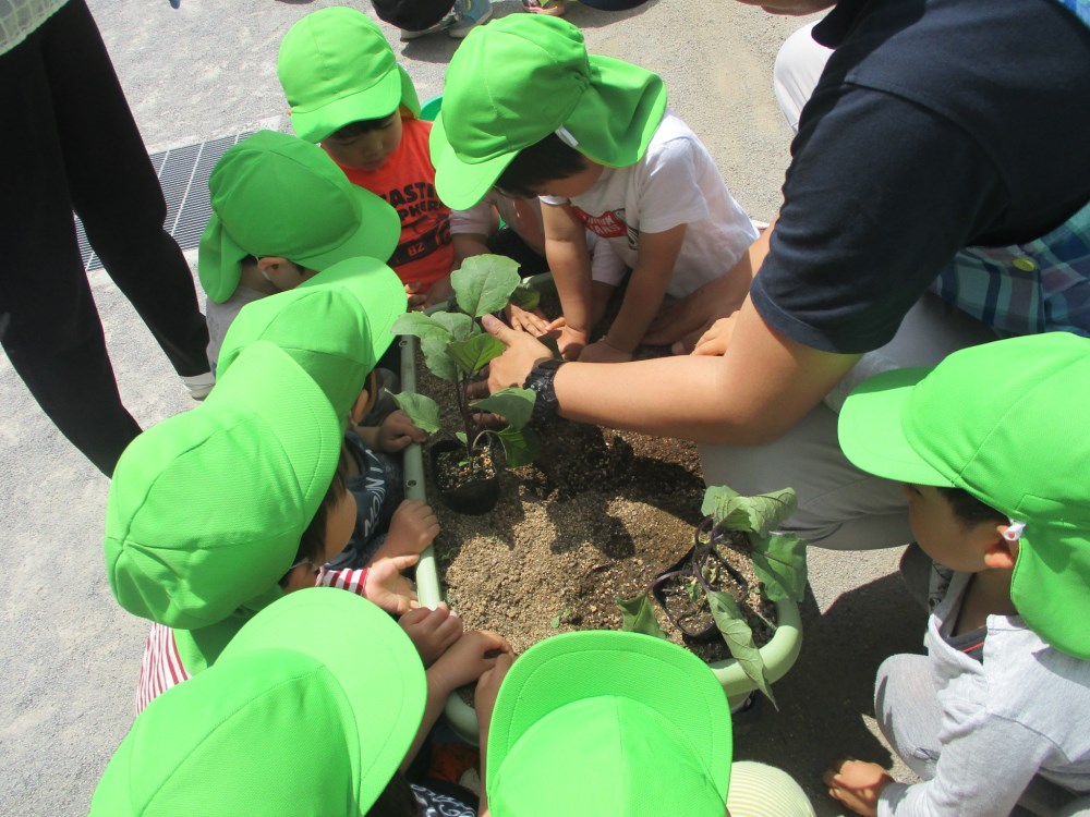 うさぎぐみが、なすの苗植えをしました。