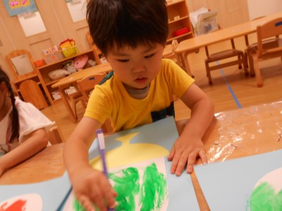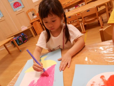 うさぎぐみさんになって、初めての絵の具に挑戦です!