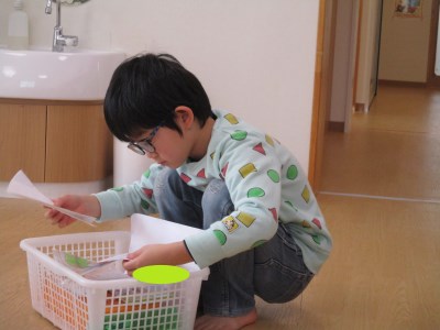 「一番遠くまで飛んだ!!」と大喜び!!そのあとはお友だちに折り方のコツを伝えていました。