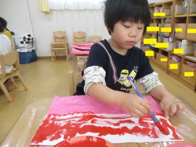 画用紙は、絵の具で塗っていき丁寧に塗っていきました!