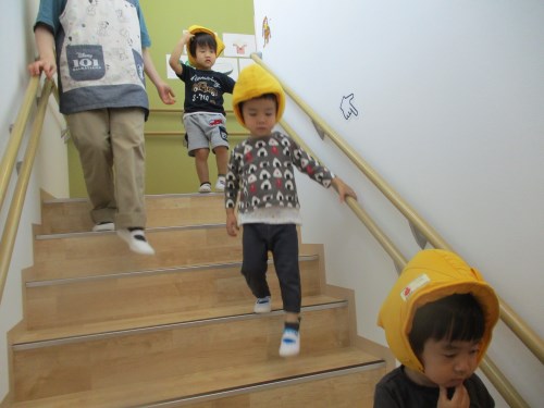 避難訓練の大切さが身についてきたようでみな真剣な表情で臨みます。