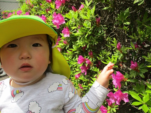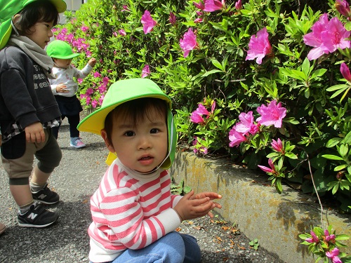 「お花いっぱいあるね!」と保育者に教えてくれます。