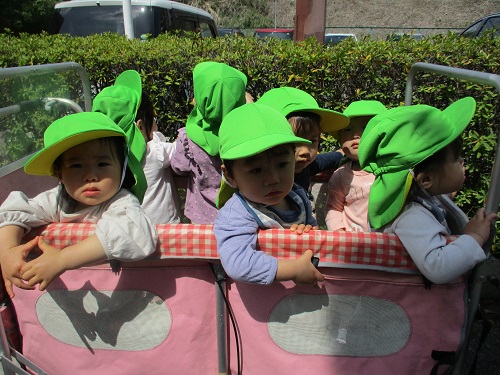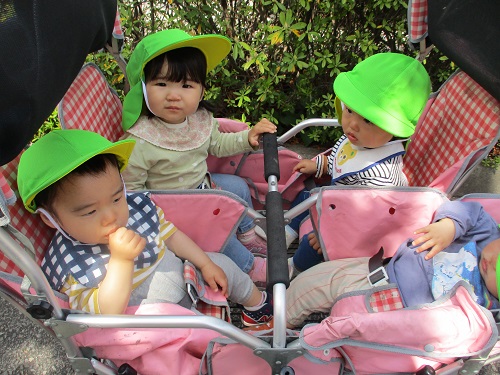 新しくはな組に入ってきたお友だちも椅子付きのバギーに乗り、周りをキョロキョロしています。
