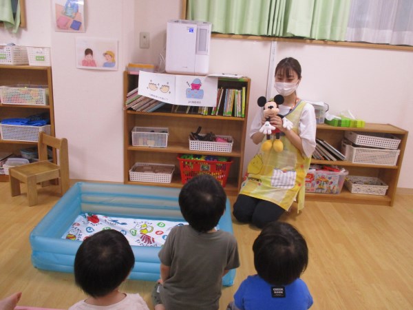 乳児さんの集会にはなんとスペシャルゲストとしてミッキーマウスが来てくれました!!