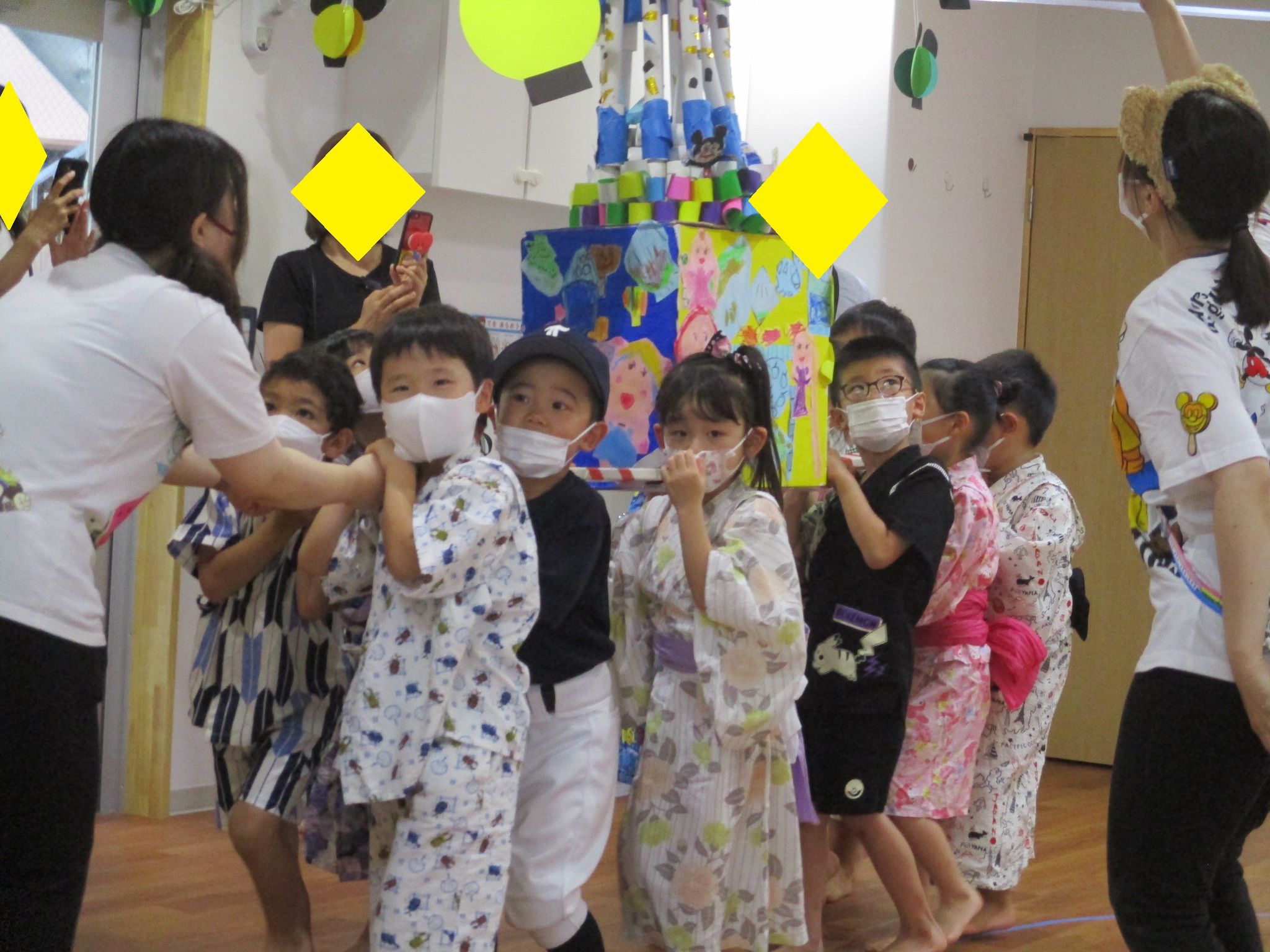 幼児組のお友だちは縁日の前に、盆踊りを踊りました。