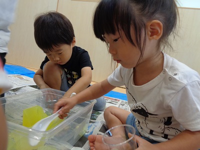 夏ならではの寒天遊び。