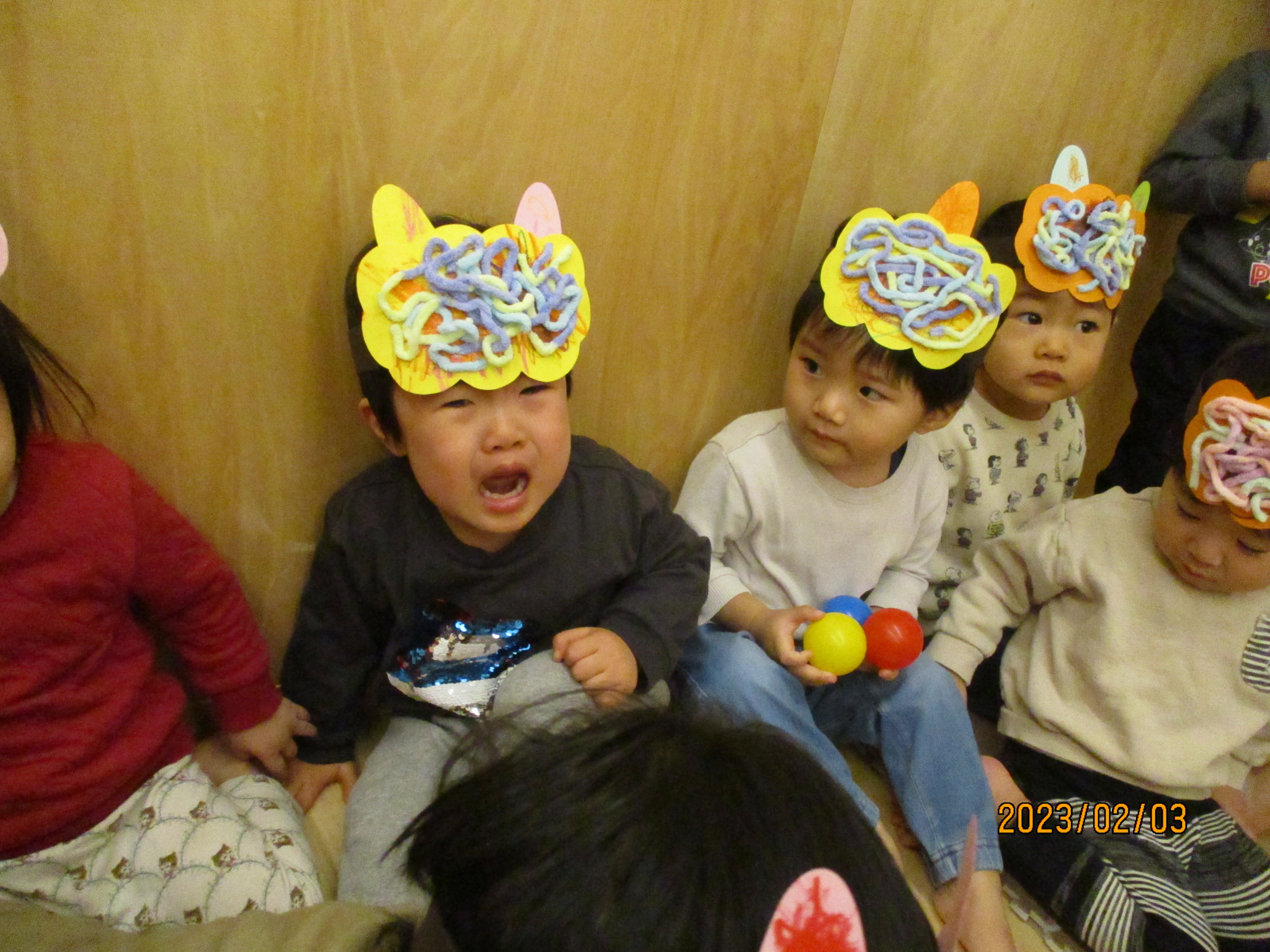 一生懸命ボールを投げて無事に鬼を退治できました!!