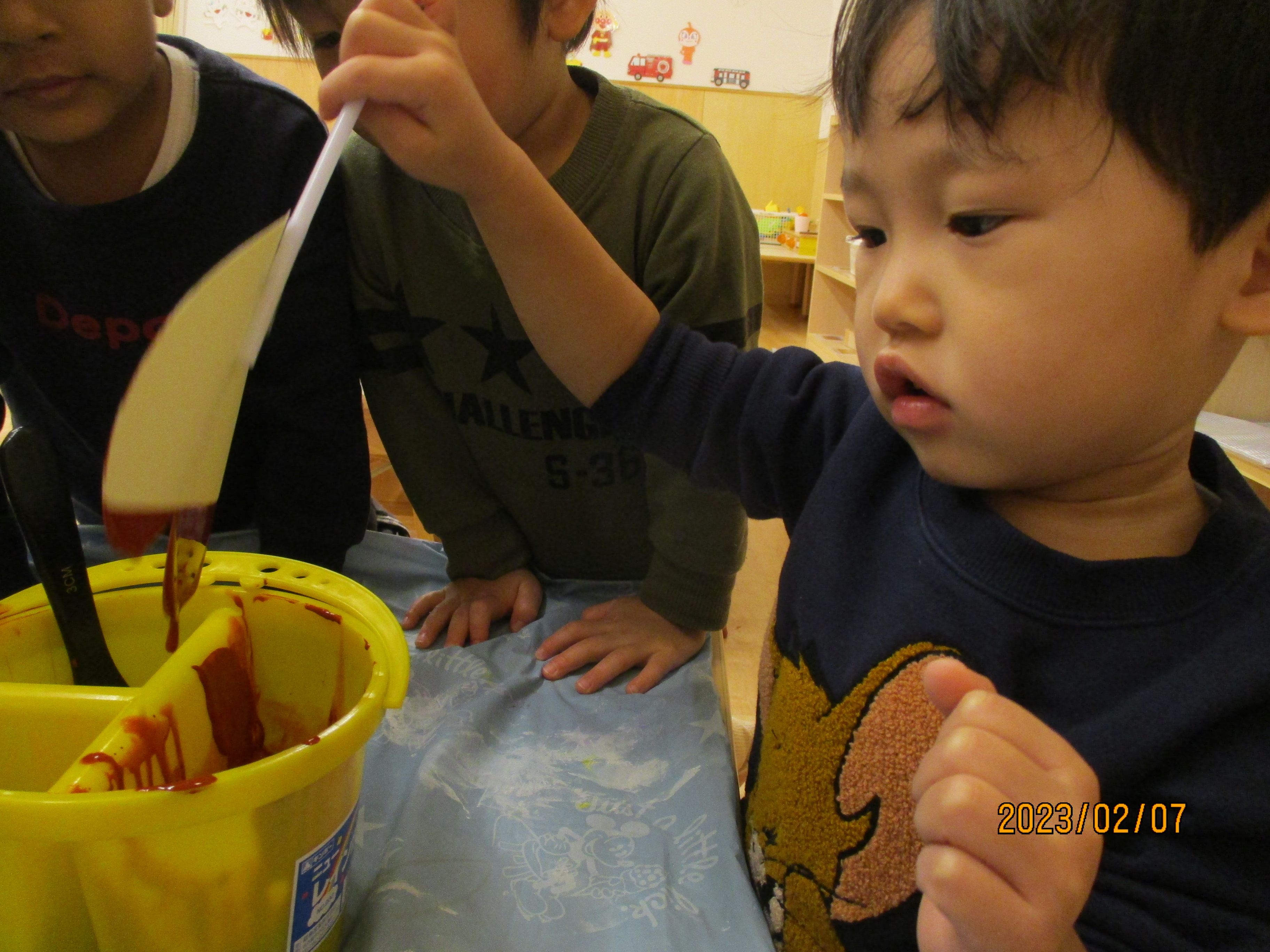 今月はバレンタインデーの製作の様子と公園での様子を紹介します♪