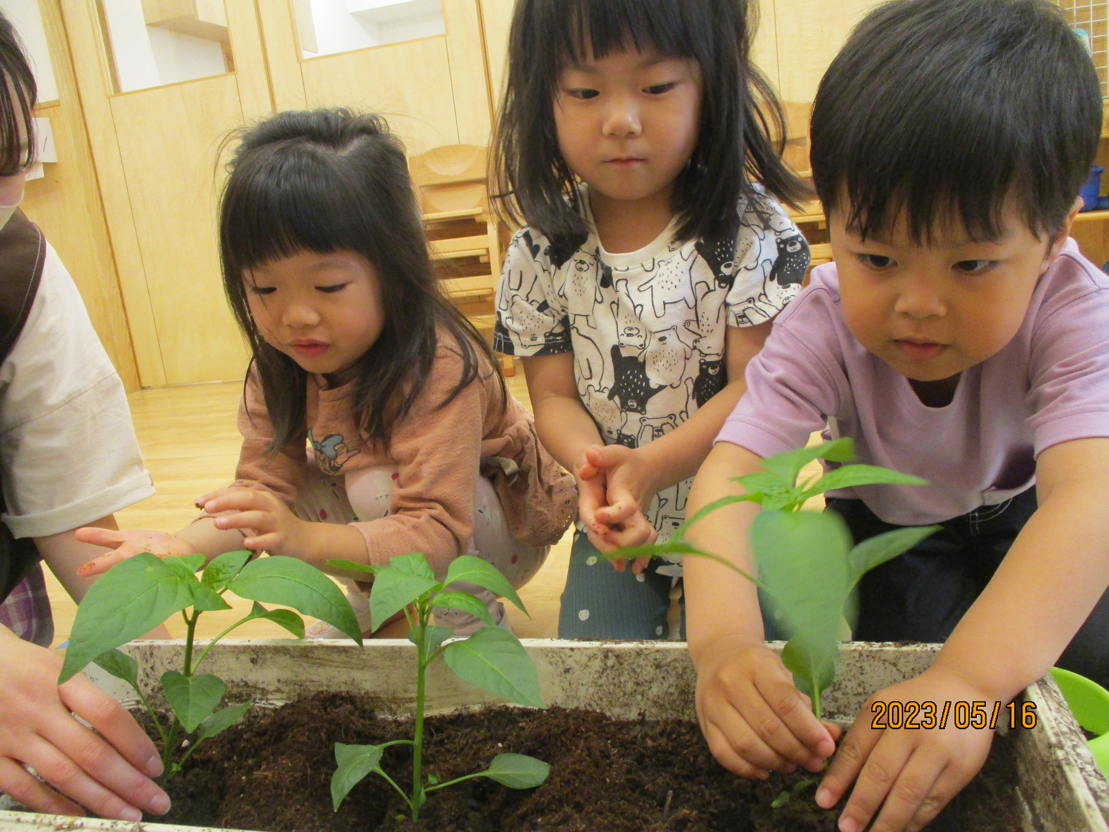 今回の食育は、ピーマンの苗植えをみんなで行いました(*^^*)
