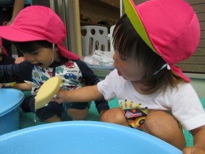 幼児クラスは水、泥遊びをした日の姿をお届けします♪