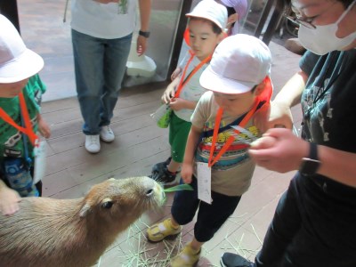 カピバラと触れ合いTime~餌もあげました。